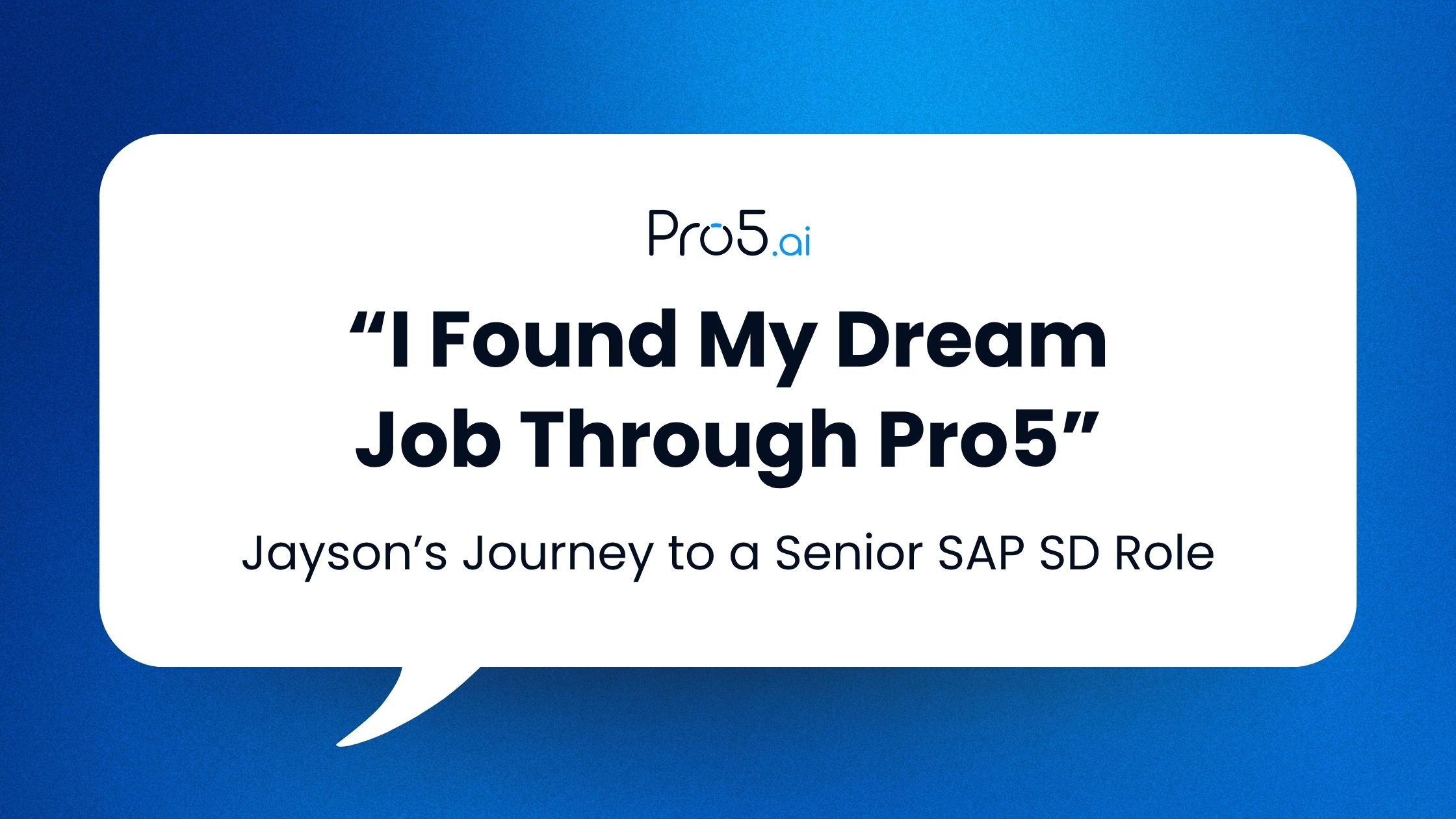 How Jayson landed his dream Senior SAP SD role via Pro5.ai with remote‑hybrid flexibility, cloud projects, and a 50% salary increase. See the candidate journey.
